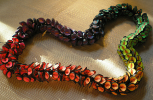 Apparently the labor intensive aspect of that project has not dissuaded dozens of artists around the world from making a pinched petal lei , and in many instances adding their own twist. I am always delighted when I run across examples on Facebook, blogs and Flickr.