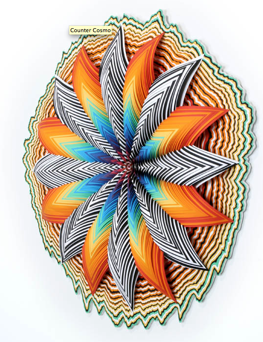 As seen on Design Boom today (and Facebook, Pinterest and photo site link) ..the colorful paper sculpture of Jen Stark -beautifully conceived, constructed and exhibited.
