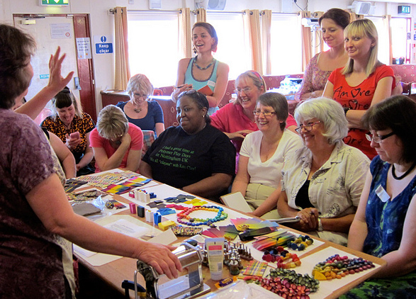 . Yes! We will all be taking colorful walks this summer….The workshop “Walking the Enlightened Rainbow” was a combination of guided meditations, collaging, group brain storming, polymer clay color mixing strategies/concepts. laughter and joy- while making colorful walking sticks