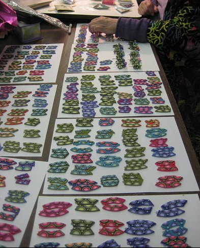 If you’ve read our book – Polymer Clay Color Inspirations and were intrigued by the color collage process as a way to determine a set of custom mixed primaries to use in your work, then you might be interested in this two day workshop November 5th and 6th, 2011 = “Exploring the Rainbow” at Woman Creative in Buford, Georgia (near Atlanta). A more complete workshop description may be found here along with the supply list. Registration details are here.